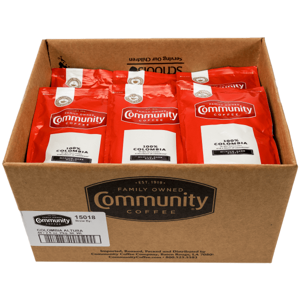 Our 100% Colombia coffee is carefully sourced from the Andes Mountains where the high altitude is known for developing a rich, bright and winey flavor. Made from only 100% select Arabica coffee beans. These premeasured coffee packets are useful for brewing 40 (10-12 cup) pots of rich, smooth and distinctive Community® coffee. Compatible with commercial coffee and coffee/tea combo brewers. Perfect for offices, businesses and foodservice operations. Filters sold separately.