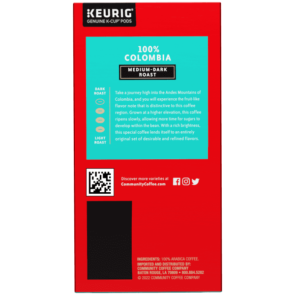 Take a journey high into the Andes Mountains of Colombia, and you will experience the fruit-like flavor note that is distinctive to this coffee region. Grown at a higher elevation, this coffee ripens slowly, allowing more time for sugars to develop within the bean. With a rich brightness, this special coffee lends itself to an entirely original set of desirable and refined flavors. Made from only 100% select Arabica coffee beans. Compatible with Keurig® K-Cup brewers and other single-serve brewing systems. For the best-tasting cup, we recommend using your brewer's 8 oz brew option.
