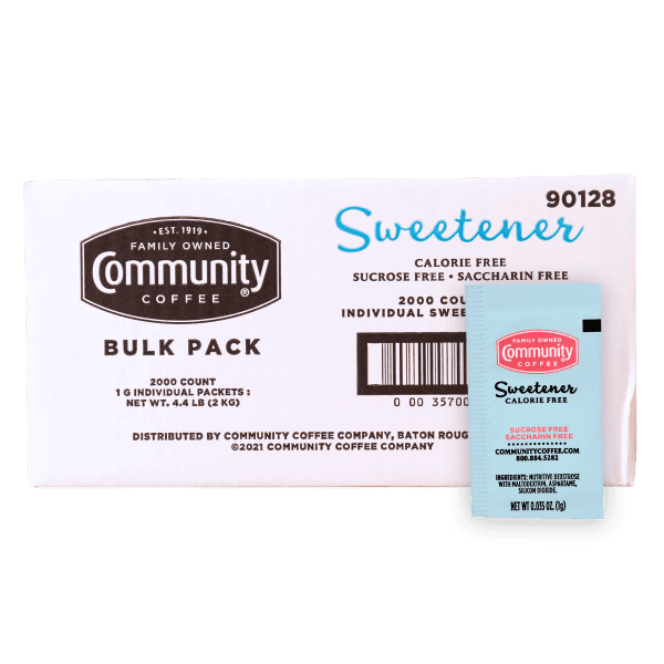 Community® Calorie Free Blue Sweetener gives you the great taste of sugar without all the calories. Our sweetener makes coffee and tea taste sweet and delicious. It’s the perfect choice for those counting calories or limiting sugar in their diet. Dissolves quickly hot or cold. One pre-portioned packet sweetens like two teaspoons of sugar and has less than one gram of carbohydrates. Best of all, this Community Calorie Free Sweetener contains NO SUCROSE, NO SODIUM and NO SACCHARIN.