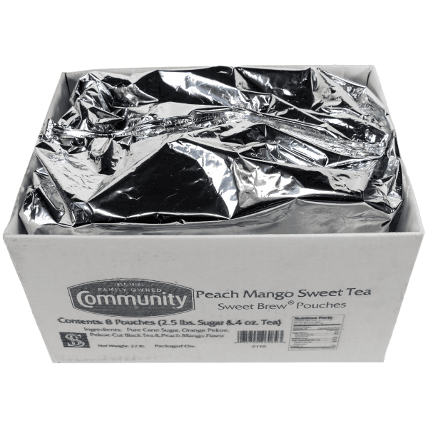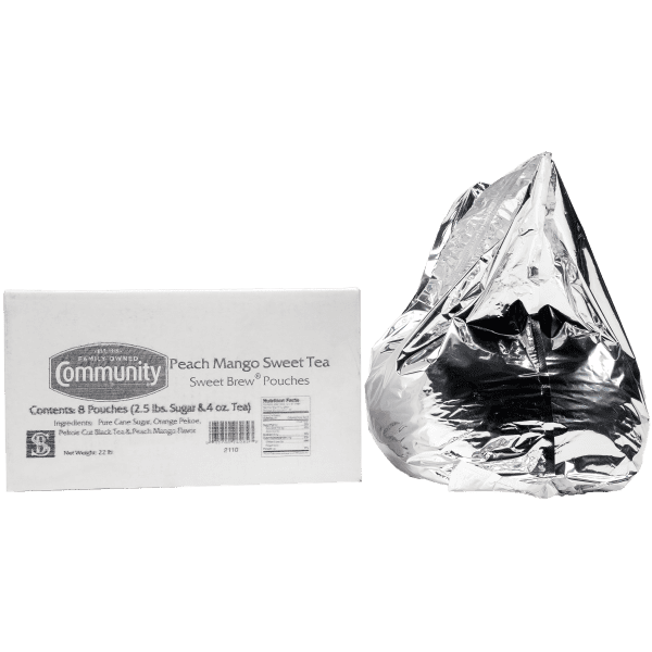 Perfectly blended tea leaves, with just the right amount of sweetness. That's the secret to Community® Sweet Tea. We've added just a bit of natural peach and mango, sweetened with natural pure cane sugar in a ready-to-brew pouch, for a fresh twist on our iconic iced beverage.